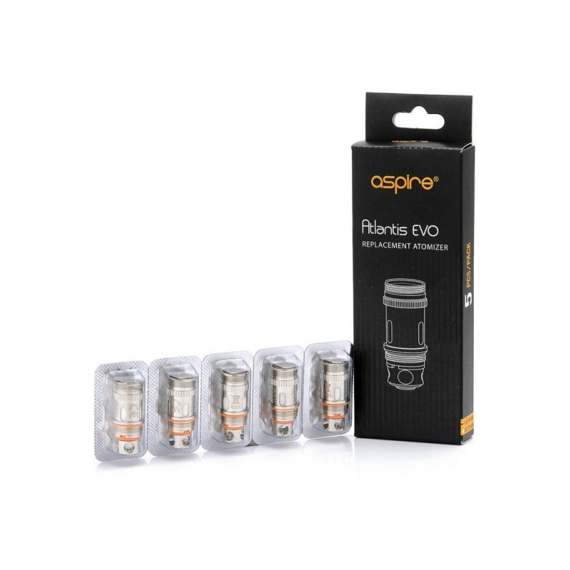 Aspire Atlantis Replacement Coil Features: Atlantis EVO Coil System 0.4ohm Kanthal Clapton - rated for 40-50W Cross-Compatibility with Aspire Atlantis Coils Organic Cotton Compatible with a wide range of Aspire Tanks Compatible with other branded tanks that use Atlantis style heads Includes: Pack of 5 Aspire Evo Coils