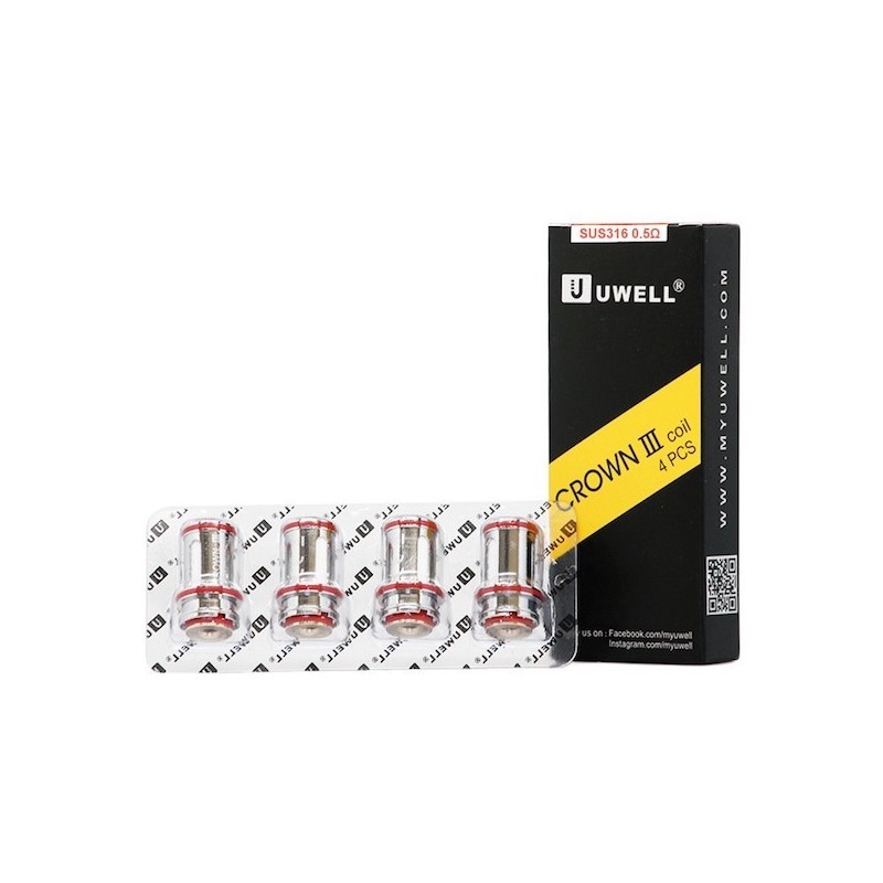 These authentic Uwell Crown III coils feature a vertical parallel construction, SUS316 wire and organic cotton wicking material, and are designed with the threadless Uwell plug & pull system for no-fuss installation in your Crown III Tank.